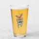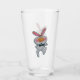 Ce caisson en verre pour les boissons a un joli lapin lapin blanc avec des joues roses donnant un signe pouce vers le haut sur l'avant et l'arrière.