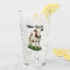 Versez un grand verre de lait. Vache dans une parcelle d'herbe et texte changeable qui dit Moo Juice.
