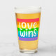 Cette oeuvre d'art présente un arc-en-ciel coloré avec les mots Love Wins.