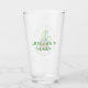 Ce verre amusant est parfait pour votre bière verte le jour de la Saint Patrick. Il présente un léprechaun de gnome vêtu de vert avec beaucoup de shamrocks, trèfle et fleurs autour de lui. Au-dessus de lui, on dit "Commencez par les Shenanigan !" Au contraire, vous personnalisez avec votre nom.