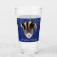 Mardi Gras Glass possède un masque Mardi Gras noir, doré et blanc aux accents gris et une petite image d'étoiles dorée imprimée à l'avant et à l'arrière de ce verre. "laissez les bons moments rouler". Customisez si vous préférez ou achetez comme prévu pour vous prochaine Mardi Gras Celebration. Couleurs : Noir, Couleur or, Blanc, Gris sur Sapphire arrière - plan bleu sur verre transparent.