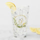 L'avant du verre est décoré de façon géométrique avec des citrons et de la verdure et de la place pour votre premier. L'arrière est assorti au design avec des citrons et de la verdure.