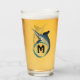 Un espadon puissant sautant d'une vague bleue. L'onde a un intérieur bleu clair pour un monogramme. Le "M" est court pour monogramme et peut être customisé pour répondre à vos besoins.