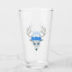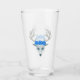 Ce caisson en verre pour les boissons a une tête de cerf blanc mythique avec de grands bois, de beaux yeux bleus, portant trois grands roses bleus sur le dessus de la tête sur le devant et le dos.