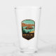 A vintage travel badge design of Crater Lake National Park, a crater lake with Wizard Island and Phantom Ship in Agraath County, Oregon United States.