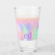 Un arrière - plan holographique branché aux couleurs pastel unicorne et arc-en-ciel rose, violet, or rose, vert menthe. Décoré avec des gouttes de parties scintillant en or rose, rose et violet. Personnalisez et ajoutez vos initiales monographiques. Lettres violettes et audacieuses. Un peu de glamour quotidien pour égayer votre journée !