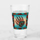 Il s'agit d'un verre de bière Paw Bear de la tribu sud-ouest unique "One of a Kind"! Il est doté d'une patte d'ours tribale amérindienne qui représente la protection et la santé...sur un Arrière - plan Sunset Turquoise et Orange...Entouré d'une frontière Turquoise, Orange et Noir Sud-Ouest ! C'est un graphisme original de l'artiste Kerry Miller.