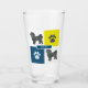 Cherchez-vous le cadeau parfait pour l'amoureux des chiens dans votre vie ? Ne cherchez pas plus loin que ce chien Chih Tzu silhouette jaune, bleu et noir lignes grille abstrait motif verre à boire. Les empreintes de pattes alternant avec la jolie silhouette font un motif cool. Vous pouvez personnaliser avec votre nom d'animal de compagnie ou simplement laisser la race au milieu du design.