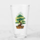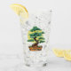 aquarelle traditionnelle d'un bonsaï japonais devant le soleil jaune vif sur un verre de boisson.