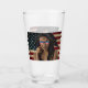 Un drapeau rustique américain avec un bord en détresse avec une femme avec lunettes de soleil inspirées des USA.