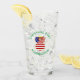 Le verre à boire montre un ange aux cheveux rouges portant le drapeau des Etats-Unis d'Amérique pour la décoration de vacances ou de Noël. L'ange de Noël du drapeau américain est trouvé entouré de texte vous permettant d'ajouter votre propre texte ou de personnaliser avec un nom et l'année. La lettre est bleue.