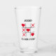 Drôle verre de bière valentine avec des noughts & croix avec les cercles remplacés par des coeurs d'amour, votre nom de valentines, et le mignon dicton "tu as gagné mon coeur".