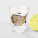 Un dessin au crayon de couleur d'un nouveau faon de cerf blanc à queue de bébé orne ce verre de tir personnalisable!