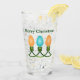 Trois ampoules colorées de jour férié toutes rangées sont présentées dans le graphique de Noël qui orne ce verre de boisson dans les tons orange et bleu avec des cordons verts entre les deux. Le texte est facile à customiser.