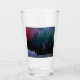 Paysage moderne aux couleurs vives montrant la scène forestière avec lumières du nord ou aurora boréale et ciel étoilé.