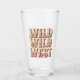 Style rétro grunge "Wild Wild West" design texte avec des lettres rayées dans les couleurs jaune, rouge et beige