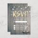 Modèles de cartes de réponse RSVP de mariage - Écriture élégante, verres à champagne vintage et guirlandes de lumières sur fond en bois rustique.