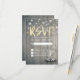Modèles de Cartes de Réponse RSVP Mariage - Écriture Élégante, Verres à Champagne Vintage et Guirlande Lumineuse sur Fond en Bois Rustique.
