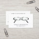 cartes de visite élégants pour optométristes, opticiens, ophtalmologistes ou professionnels de soins de la vision icône de lunettes de travail, votre nom en bloc noir lettrage sur un arrière - plan blanc profond. Ajoutez vos détails à l'arrière de la carte.