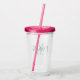 Verres à gobelet en acrylique avec monogramme de nom personnalisé. Vaisselle personnalisable pour la maison, fête de mariage, enterrement de vie de jeune fille, douche de mariée, anniversaire, vacances, sweet 16, rassemblement, réunion, événement professionnel, bureau et plus encore. Modèle de typographie à pinceau élégant avec couleur personnalisable. c'est-à-dire rose et bleu turquoise. Tasses en plastique transparentes amusantes pour les amis et la famille. Ajoutez votre propre nom monogrammé joli ou citation drôle. Comprend couvercle et paille. Design élégant pour enfants et adultes. Idéal pour boire des smoothies sains et d'autres boissons froides. Beau design avec lettrage fantaisie.