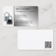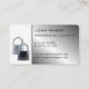 Deux cadenas sur blanc avec panneau argent poli / métal, Carte de visite professionnel. Idéal pour un serrurier, Lock Smith, Home Security, Data Protection, Key Cutter / Cutting, Secure Company, Lock Smith, Home Security, Data Protection, Car / Auto Alarmes Store, CCTV, Entry Systems, Safe Cracking and Safety et de nombreux autres professionnels du serrure. Vous pouvez modifier le texte en police, couleur, taille et emplacement en cliquant sur le bouton "CUSTOMISER IT". Veuillez noter que les noms longs d'entreprises nécessiteront un redimensionnement. Merci de votre visite.