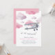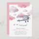 Nos invitations vintages d'anniversaires de enfants d'avion comportent un biplan d'aquarelle volant à travers des nuages roses moelleux. Personnalisez avec les détails de votre fête d'anniversaire sous. Cartes inversées à solide rose pâle. Un choix parfait pour les futurs pilotes et aviateurs en herbe !