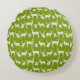 Ce joli coussin rond design de cerfs est parfait pour tous ceux qui aiment les cerfs, les animaux, la faune et les dessins amusants! Comprend plusieurs petites silhouettes de cerfs blancs sur un arrière - plan de vert vif. Ce coussin de cerfs est parfait pour le salon, la tanière, la chambre familiale, le cabine de famille sur le lac, et bien sûr il fait un grand cadeau.