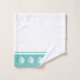 Coquillages blancs côtiers mignons et serviettes de bain vertes en verre de frontière de mer réglées.