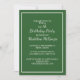 Invitations amis et famille à célébrer avec style avec cette invitation intemporelle de fête d'anniversaire verte et blanche. Doté d'un riche arrière - plan vert de forêt, de bordures blanches propres et d'une typographie classique mêlant polices serif et script, ce design apporte une élégance sans effort à tout événement marquant. Le dos de la carte ajoute une touche de plaisir en coordonnant les rayures vertes et blanches. Parfait pour les anniversaires d'adultes, les fêtes de retraite ou les célébrations haut de gamme.