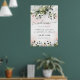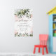Le design présente des éclaboussures d'aquarelle rose pâle ou rousse avec des éclaboussures imprimées en or simulées. Le design présente également des éléments floraux rose vif dans un bouquet ou une couronne de verdure. La couronne contient un succulent eucalyptus et d'autres éléments de verdure dans les tons vert émeraude foncé, vert sauge, bleu poussiéreux et plus pour s'adapter à toutes les saisons que votre mariage peut tomber dans et les couleurs qui complètent la couleur rougir. Réglez à 24 x 36 pouces par défaut - taille XL.