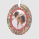 Ce magnifique ornement de gardiens de vacances pour jeunes mariés présente une luxuriante et festive couronne de feuilles d'or, de verdure de Noël et de baies rouges saintes sur un arrière - plan rouge moderne. Votre photo de mariage personnel va au centre avec les mots "Marié et Joyeux", et il y a même un endroit pour votre nom. Une deuxième photo se trouve à l'arrière. Un cadeau parfait pour le mari et la femme nouvellement mariés.