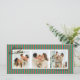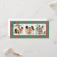 Petites bandes verticales vertes et coralliennes rouges donnent à cette carte de vacances photo une ambiance moderne et chic avec des polices classiques et un long message customisé pour les amis et la famille.