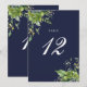 Ces élégants numéros de table de mariages floraux botaniques peuvent être personnalisés en typographie chic sur un arrière - plan bleu marine. Les cartes sont imprimées à l'avant et à l'arrière (recto double). Conçu par Thisisnotme©