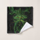 Un visage d'homme vert de la lore celtique sur fond de feuilles noirs et verts.