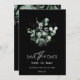 Ce mariage moderne vert noir enregistrer la carte de date design dispose d'un mélange facile et d'apparier les styles de coordination en noir et blanc avec des éléments de verdure délicats ajoutant gracieusement fleurir autour d'une simple typographie sophistiquée et joli script de calligraphie minimale. L'eucalyptus à l'aquarelle et d'autres feuilles botaniques s'arment magnifiquement tout le long, avec un teint émeraude foncé qui s'estompe dans un effet sombre pour un vert menthe clair - pour ajouter juste assez d'une touche classe de nature rustique à un décor contemporain neutre. Cette magnifique collection créerait un air d'élégance poli pour votre mariage de rêve formel ou décontracté ou autre événement spécial. Comme pour tous nos designs, si vous avez des questions ou des demandes spéciales, contactez-nous.