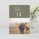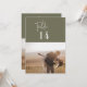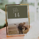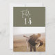 Ces numéros de table photo chic et moderne vert olive 5x7" sont parfaits pour un mariage simple. Le design boisé boho comprend une typographie bohème rustique unique et élégante dans une couleur verte boisée minimale. La carte s'imprime à l'avant et à l'arrière (double face). Personnalisez chaque carte avec une photo de thème fiançailles ou de voyage différente. Ajoutez chaque numéro de table dont vous avez besoin à votre panier individuellement.