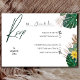 Rendez votre planification de mariage plus fluide et plus élégante avec cette carte de réponse élégante présentant un feuillage tropical luxuriant et une typographie moderne et épurée. Conçue sur un fond blanc minimaliste avec des accents botaniques vert sauge, elle ajoute une touche de beauté naturelle à votre suite de papeterie de mariage.