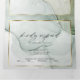 Chic brin terreux de taches d'encre d'alcool dans les tons verts et dorés muets - chaque section surlignée d'une simple couverture blanche encadrée d'or doré, sur le centre est votre photo accentuée d'un cadre double or et derrière la couverture blanche pure pour un appel ésotérique une belle conception abstraite moderne pour un tout en un complet avec un choix de repas détachable préadressé à vos invités pour envoyer facilement un courrier - un magnifique tout en un faire-part de mariage -