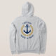 Une ancre de bateau nautique conçue sur mesure (avant et arrière), des feuilles de laurier de style or et une étoile d'or avec grade de capitaine ou autre titre et votre nom personnalisé ou nom de bateau sur un sweat - shirt à capuche zip-up femme. Plusieurs couleurs au choix. Fait un grand cadeau.