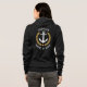 Une ancre de bateau nautique conçue sur mesure (avant et arrière), des feuilles de laurier de style or et une étoile d'or avec grade de capitaine ou autre titre et votre nom personnalisé ou nom de bateau sur un sweat - shirt à capuche zip noir femme. Plusieurs couleurs au choix. Fait un grand cadeau.