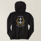 Une ancre de bateau nautique conçue sur mesure (avant et arrière), des feuilles de laurier de style or et une étoile d'or avec grade de capitaine ou autre titre et votre nom personnalisé ou nom de bateau sur un sweat - shirt à capuche noir. Fait un grand cadeau.