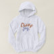 The image displays the uplifting phrase “Choose joy” written in a decorative cursive font. The word “Choose” is in brown, while “joy” is in soft, light purple, adding a gentle and cheerful mood. Above “Choose” is a small right-pointing arrow, as if nudging the viewer toward happiness. Surrounding the word “joy” are tiny decorative elements like heart symbols and arrows, enhancing the joyful and encouraging tone. This design is ideal for affirmation-themed products or items that inspire positivity.