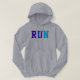 Sweatshirt à capuchon. "COUREZ" sur l'avant, le dos de logo d'athlétisme dessus et la citation de Steve Prefontaine.
