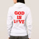 Cette sweat - shirt à capuche de femmes présente une police de cinq caractères avec des lettres rouges affichant le dicton biblique "Dieu est amour" avec le O in Love remplacé par une collection du mot Amour fait dans un coeur dans ce thème biblique de citation. Ce sweat - shirt à capuche est incroyablement doux et détendu à partir d'un mélange de polycoton peluche parfait pour l'usure quotidienne avec une image plus grande assortie imprimée sur le dos.