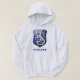 Blanc (mais toute couleur disponible fonctionne) sweat - shirt à capuche représentant des armoiries de Finlande affichées sur un motif de bouclier qui reprend le thème. Notez les options pour améliorer l'image. Celui-ci utilise le sous-ton blanc pour améliorer le design.