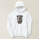 Short description: A white hoodie with a bold and distinctive design featuring a skeleton wearing a mushroom hat and smoking, sitting on a skateboard with the "FLYING HIGH" logo surrounding it. Perfect for streetwear enthusiasts and those who appreciate unique designs.