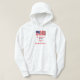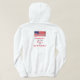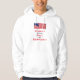 Ce sweatshirt patriotique sweat - shirt à capuche blanc est imprimé à l'avant comme à l'arrière. Le texte est "La dissidence est l'âme de la démocratie" en rouge et bleu. Photo originale du drapeau américain agitant par Alan Socolik. Tous droits réservés © 2015 Alan & Marcia Socolik.