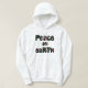 Graphique à thème de Noël mignon et significatif avec des signes de paix rouge et vert accentué dans chaque lettre. Wishing Peace on Earth... à Noël et tous les jours.