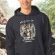 Le sweat - shirt à capuche de cet homme présente un beau loup de bois dans des tons doux d'argent/gris, d'orange et de blanc. Sa maison sauvage dans les pins est dans l'arrière - plan. Le lettrage a un look "angoissé" rugueux. Il y a beaucoup de couleurs différentes pour vous de choisir parmi si Profitez!
