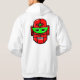 Une tête de robot en rouge avec un élégant panneau en forme de croissant vert, un troisième oeil vert, avec des dents blanches et des reflets. Il a une sorte de grain bizarre comme s'il a découvert les merveilles d'une nouvelle huile à moteur révolutionnaire. D'un dessin vectoriel original de N.A. Berry. Le motif est répété à la fois sur le dos et sur le devant.